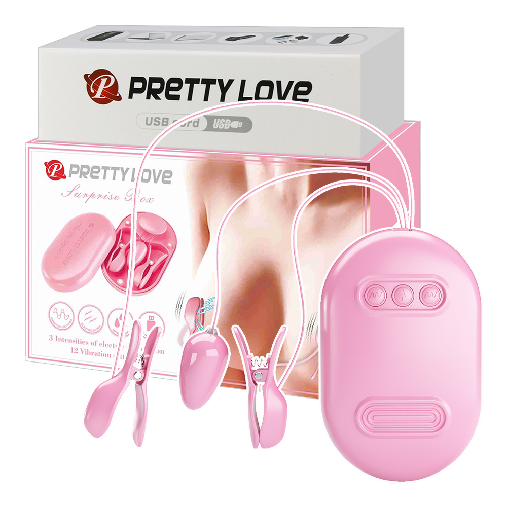夾乳吸陰類-647258000000--粉紅驚喜12x3頻電波震動蛋乳夾