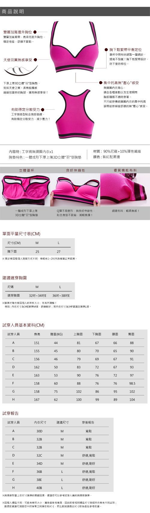 胸墊特色:一體成形下厚上薄3D立體""羽""型胸墊