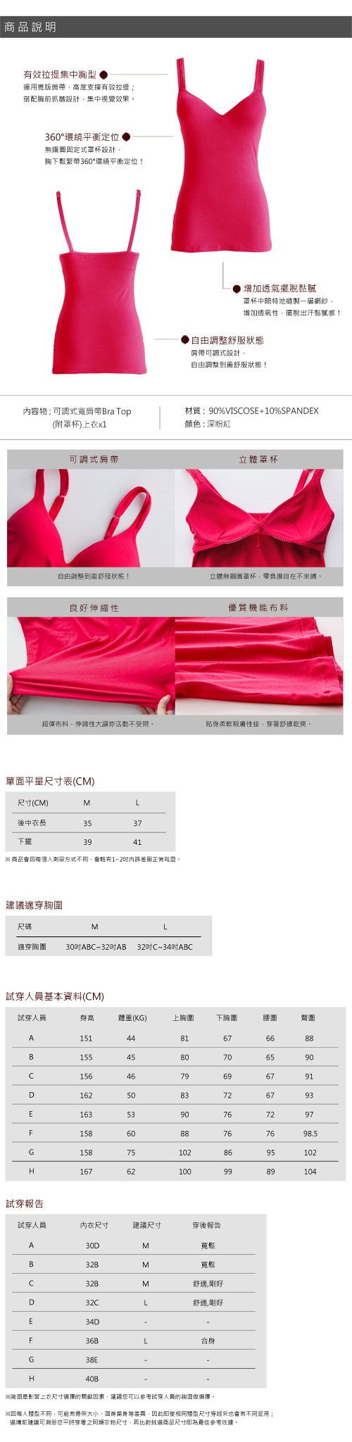 內容:可調式寬肩帶Bra Top(附罩杯)上衣x1