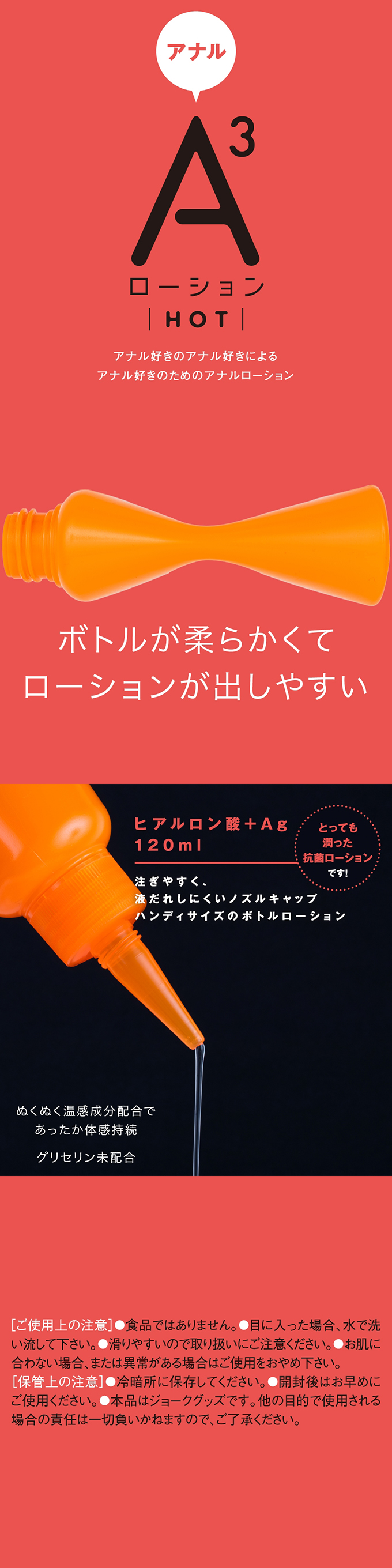 【非常濕潤清新+熱感潤滑液!】配合熱感成分,後庭自慰愛好者為後庭自慰愛好者所開發,給後庭自慰愛好者的潤滑液。不含『甘油』。高粘度且持久,讓您可以享受長時間而流暢的快樂時光。另外配合透明質酸+Ag!柔軟的容器可輕鬆擠出所需要的用量! 帶噴嘴的蓋子易於注入且不易滴落,方便攜帶的瓶裝擴張霜!審查編號:2200580