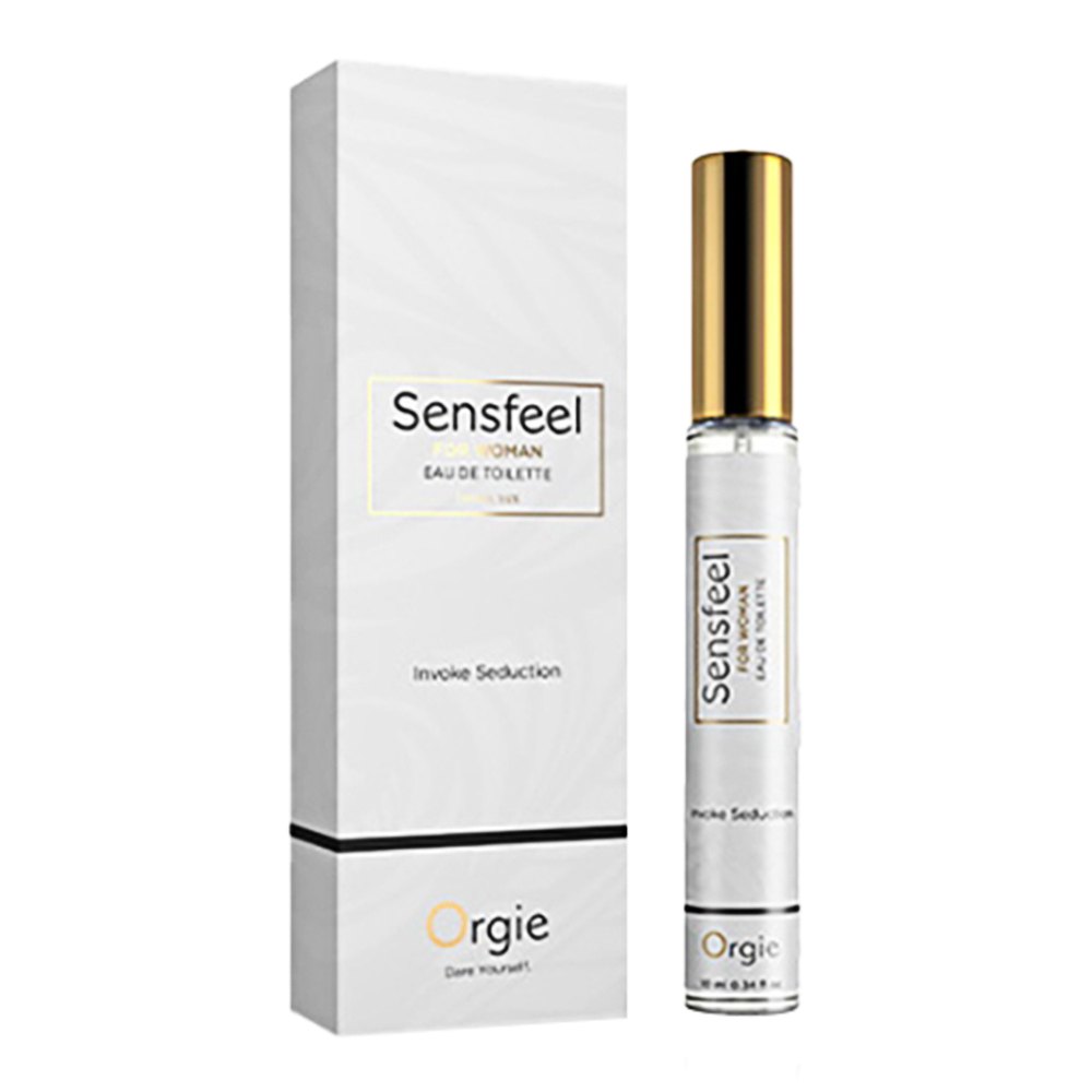 Sensfeel for Woman, 10 ml travel-size EDT perfume, exclusive Orgie formula with the natural-based active ingredient Sensfeel for Her, a pheromone enhancer that increases testosterone production in men through the interaction of two of its components - White Jasmine (Jasminum officinale) and Short Chain Fatty Acids (SCFA) from carob (Ceratonia siliqua), resulting in an imitation of copulin, the female sex pheromone.