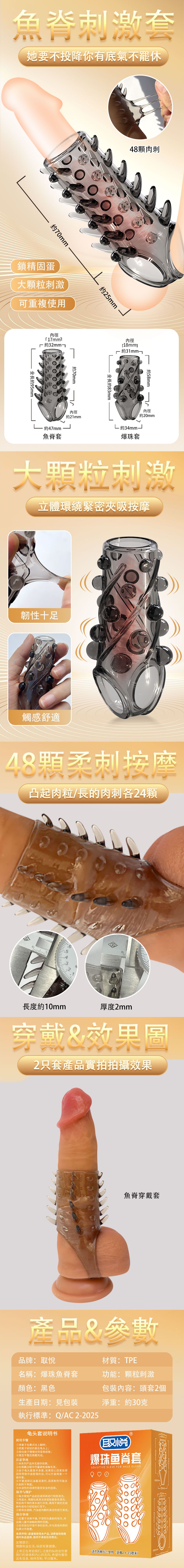 爆珠魚脊顆粒套2入-透明黑-台灣情趣大聯盟-情趣用品-www.sextoys.tw-成人用品,情趣內衣,性愛商品,性感內衣,保險套,情趣用品,情趣用品店,情趣商品,情趣商店商品詳細資料