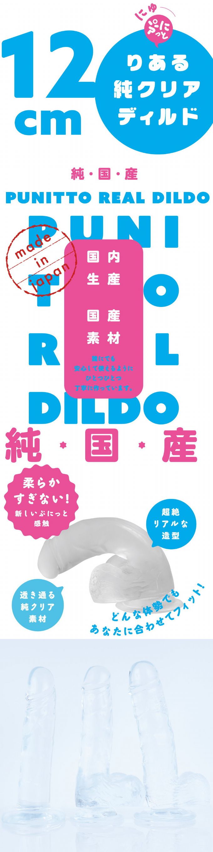 日本國內生產×日本國內素材的純透明假陽具!為了讓任何人都可以放心使用,每一個都經過精心製作。柔軟有彈性讓人上癮的手感×超逼真的造型和通透的純透明素材,對不會過於柔軟新的彈性觸感和造型有所堅持,無論是什麼姿勢都能配合您貼合您。棒的部分長125mm。前端部分最大直徑為35mm。審查編號:2105599