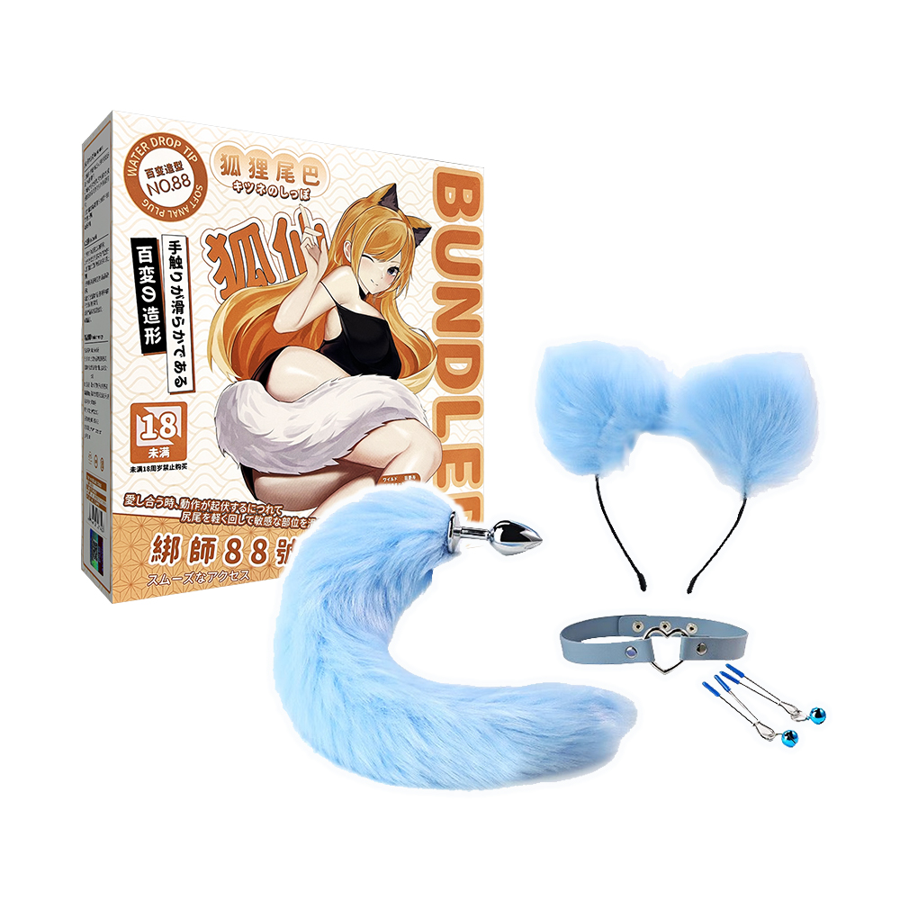 謎姬-藍狐尾巴後庭SM四件套組-台灣情趣大聯盟-情趣用品-www.sextoys.tw-成人用品,情趣內衣,性愛商品,性感內衣,保險套,情趣用品,情趣用品店,情趣商品,情趣商店商品詳細資料