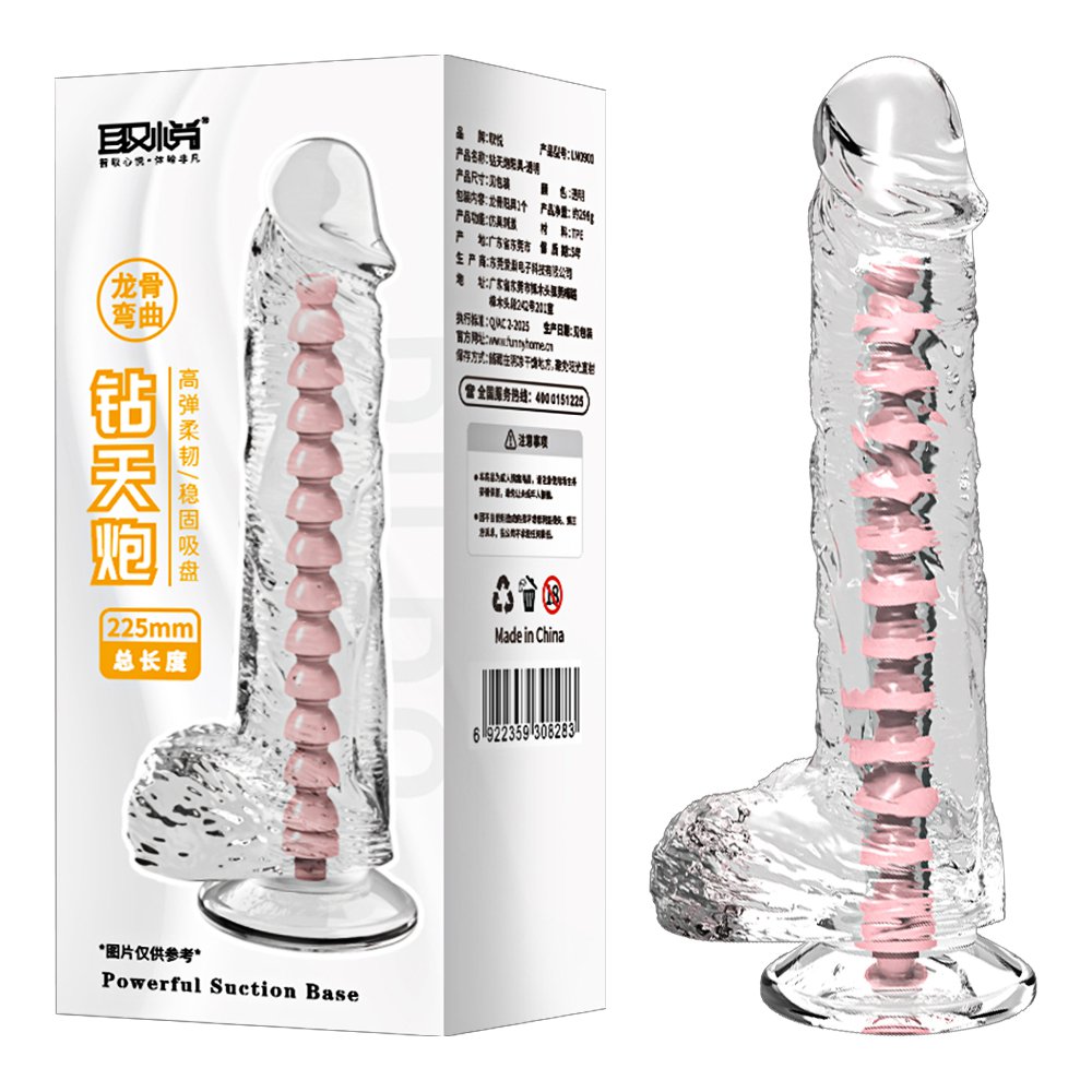 鑽天炮龍骨彎曲透明吸盤按摩棒