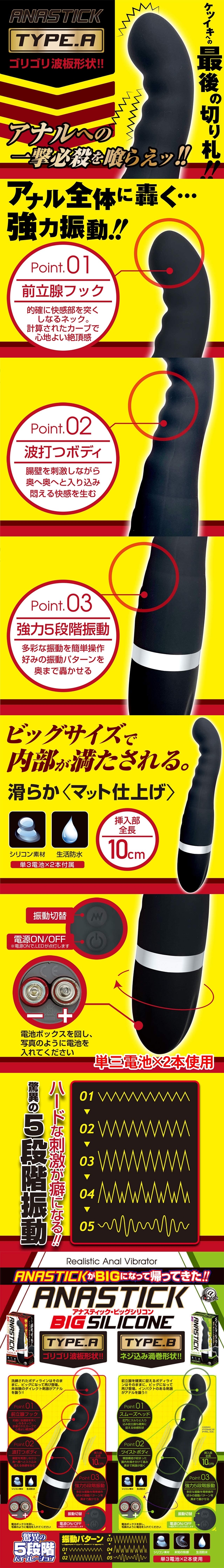 波紋板狀TYPE A是鉤狀外形,可抓住前列腺,並且沒有經驗的直接攻擊會刺激肛門。帶有5段變頻在肛門深處咆哮著,快感直頂高潮。