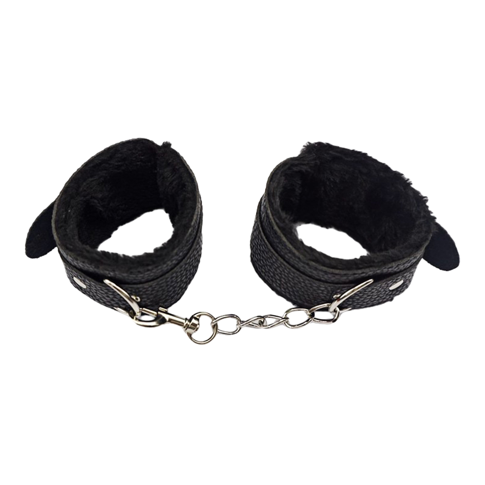 口枷手銬腳枷-727118000000--SM皮革紋理毛絨腳銬-黑