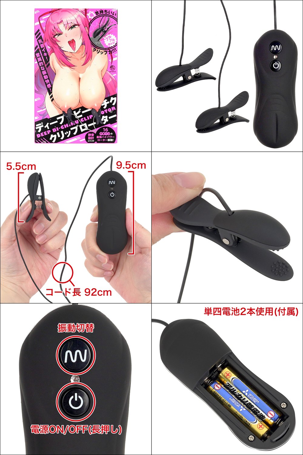 乳頭高潮!超乎想像的快感!搭載16種震動模式的超強馬達!有點痛但有很爽的夾子型乳頭馬達!正好的擠壓感和震動刺激的雙重舒服!豐富的16種振動模式刺激你的乳頭讓你達到高潮! ! ! 1個人玩乳頭!和物件調情///無限大的玩法!