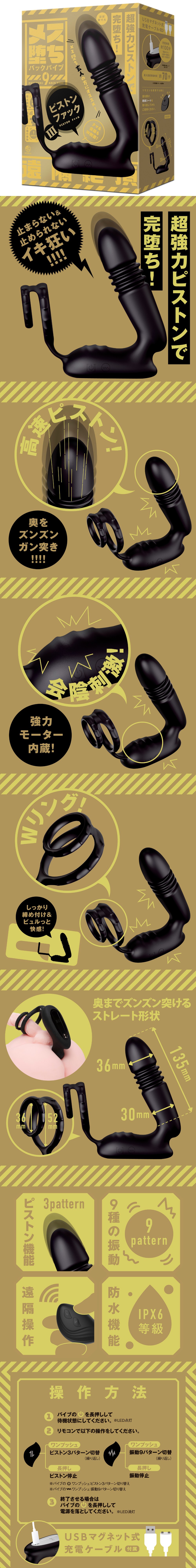 透過超強力活塞進入完全墮落的新境界,EXE - 完全防水 遠隔絶頂 瞬間墮落 9 無線遙控前列腺活塞抽插連鎖精環,第三代活塞後庭振動棒登場!