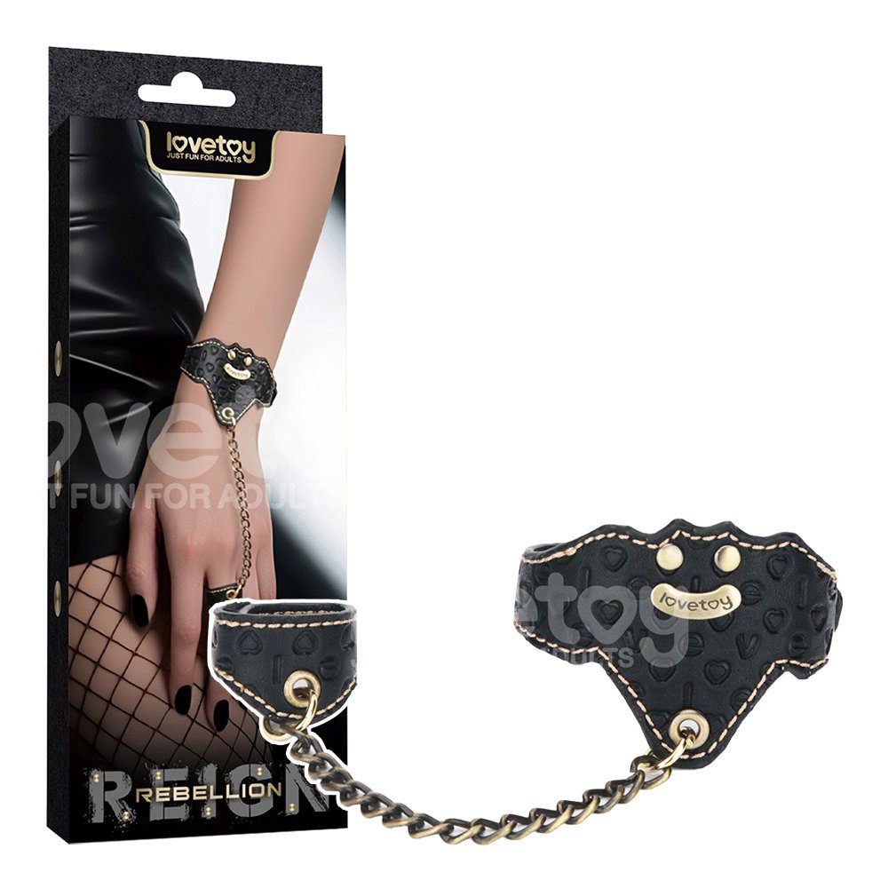 手銬飾有醒目的蝙蝠圖案,點​​綴著兩顆金屬鉚釘和低調的Lovetoy標誌,營造出獨特的神秘氛圍。套裝包含一個可調節的指銬,透過一條4.34吋的堅固金屬鏈連接,指銬採用魔鬼氈固定,完美貼合任何手型。這款腕銬兼具時尚與實用性,是日常配戴的理想選擇。
